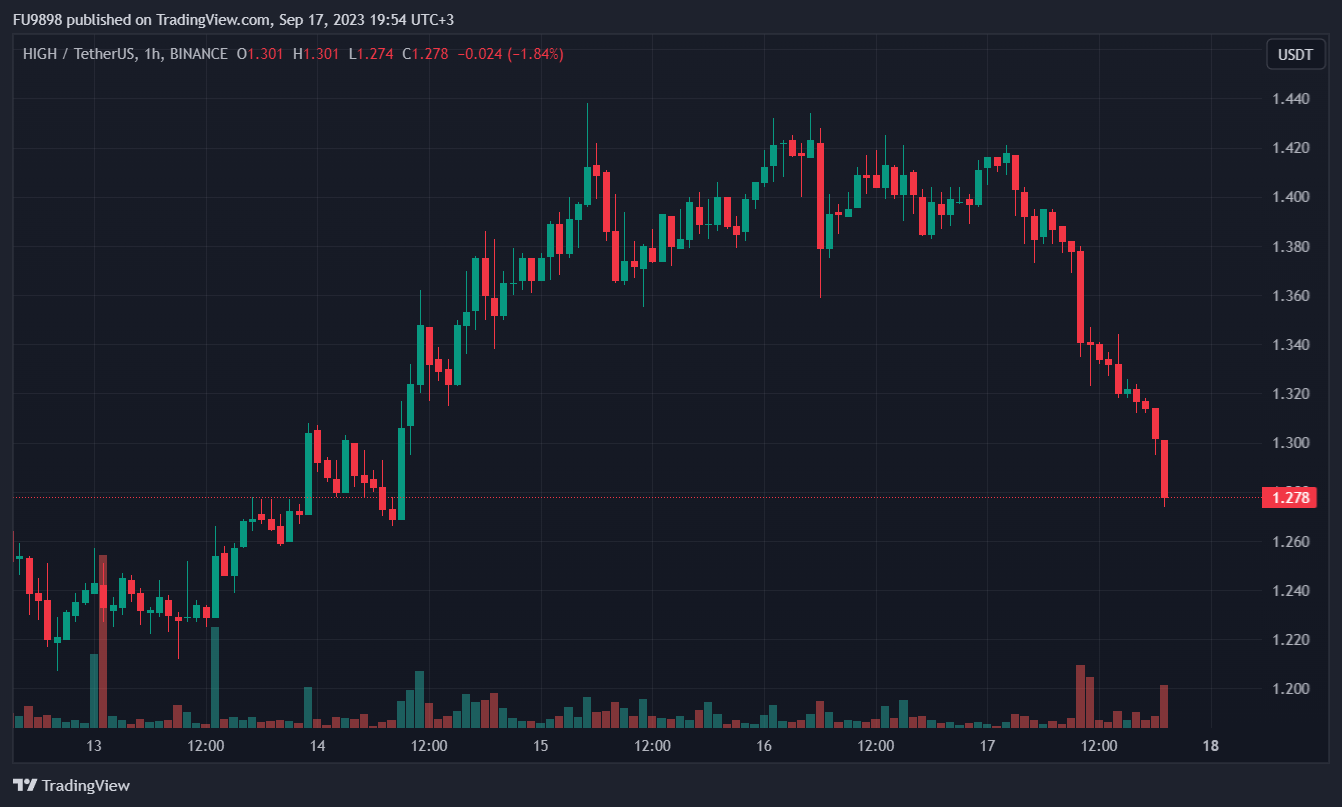 The decline in the HIGH token, which was already losing blood during the day, deepened after the transfer, and the price of the altcoin is trading at $ 1.30 at the time of writing this article, with a loss of approximately 8% in the last 24 hours.