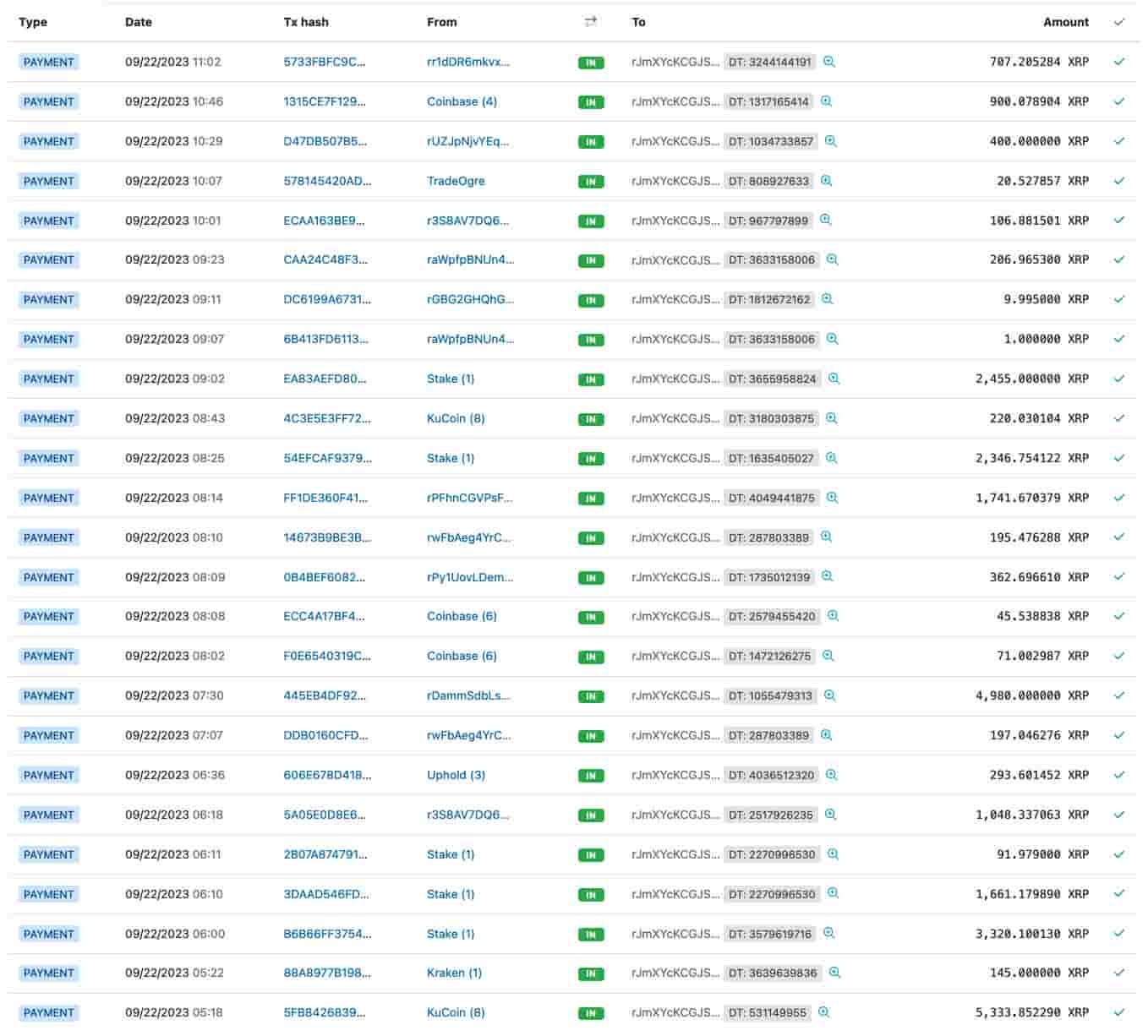 Interestingly, this address — that is supposedly under his control — has a balance of 161.54 million XRP tokens ($81.94 million), with the first transaction of 10 XRP received on February 19, 2023, according to on-chain data from BitHomp. This first payment was sent by a Crypto.com account.
