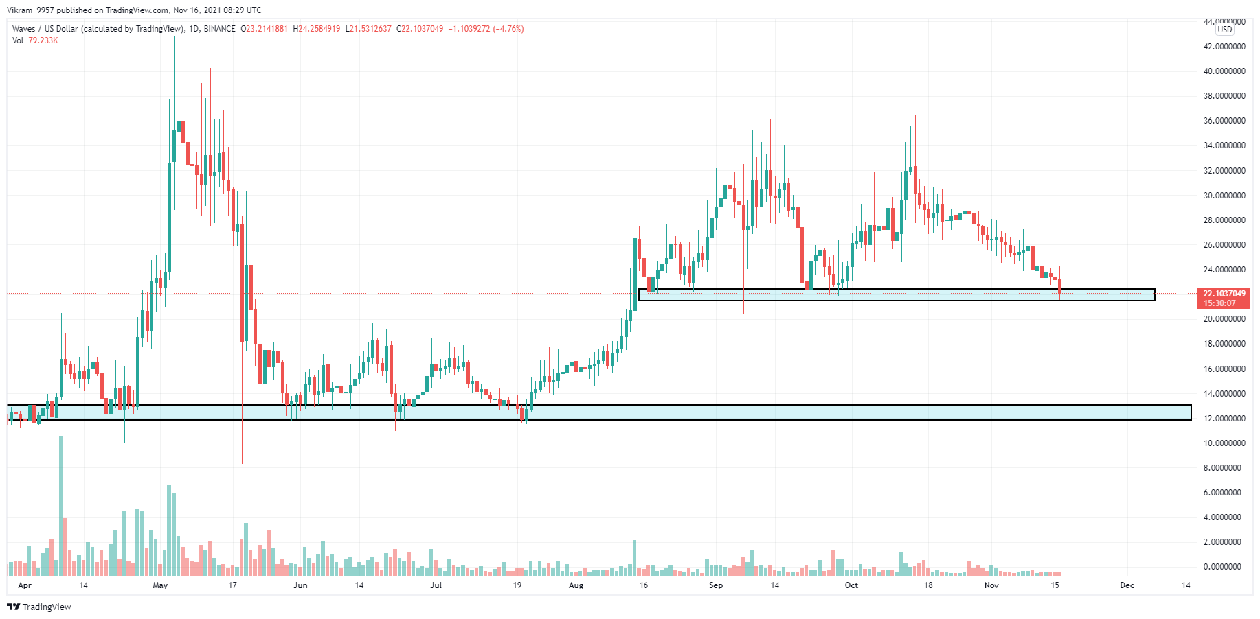 According to CoinMarketCap, the current price of Waves at press time is $22. It has 106 million coins in circulation and a market capitalization of $2.35 billion. Meanwhile, the cryptocurrency ranks at 67th position, according to Coinmarketcap.