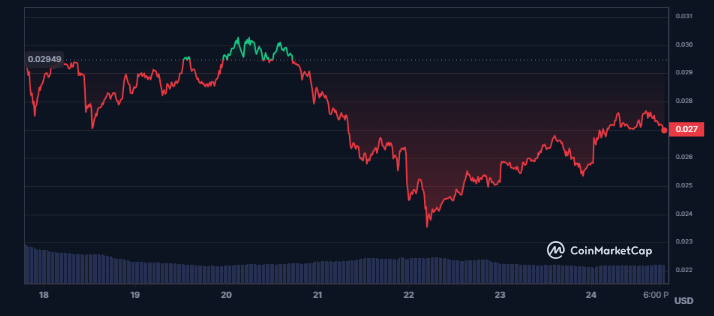$TOKEN is trading at $0.02694, down 8.7% in the last seven days.