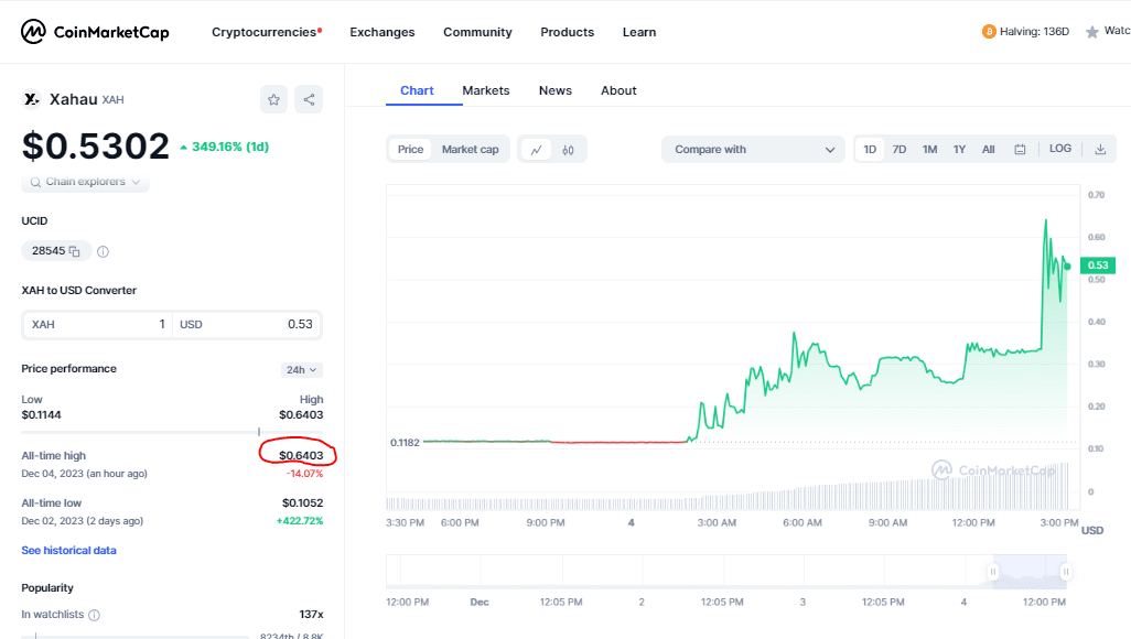 According to CoinMarketCap data, the XAH token has a market cap of around $201 million, significantly lower than XRP’s $34 billion. Yet, XAH’s price may surpass XRP because the token has a lower supply of 600 million tokens. XRP, in contrast, has a maximum supply of 100 billion coins.