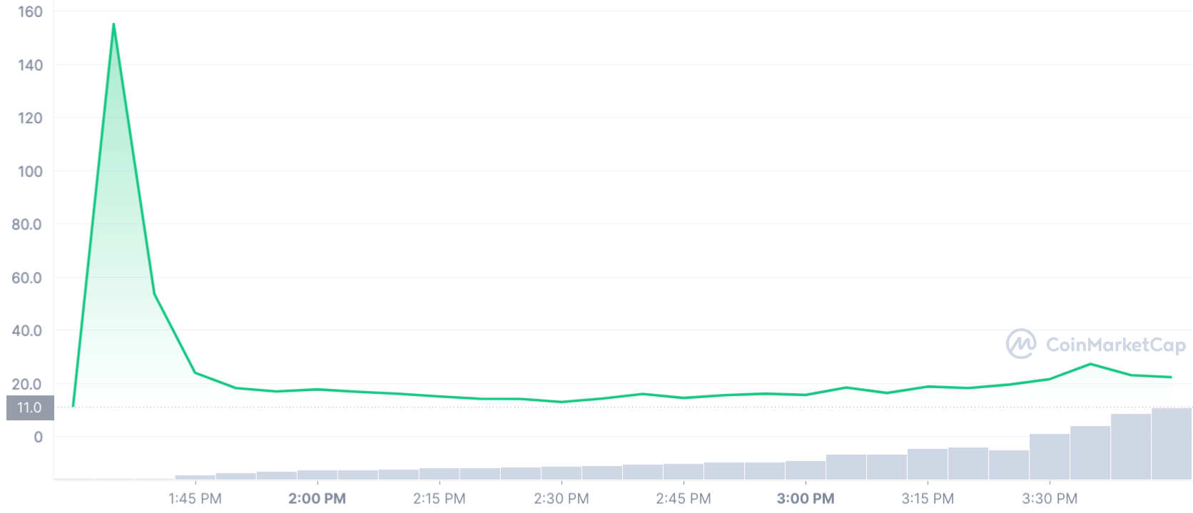 The price went up 157% as the day unraveled and briefly topped $27. At the time of writing, the token is changing hands for $23.60.