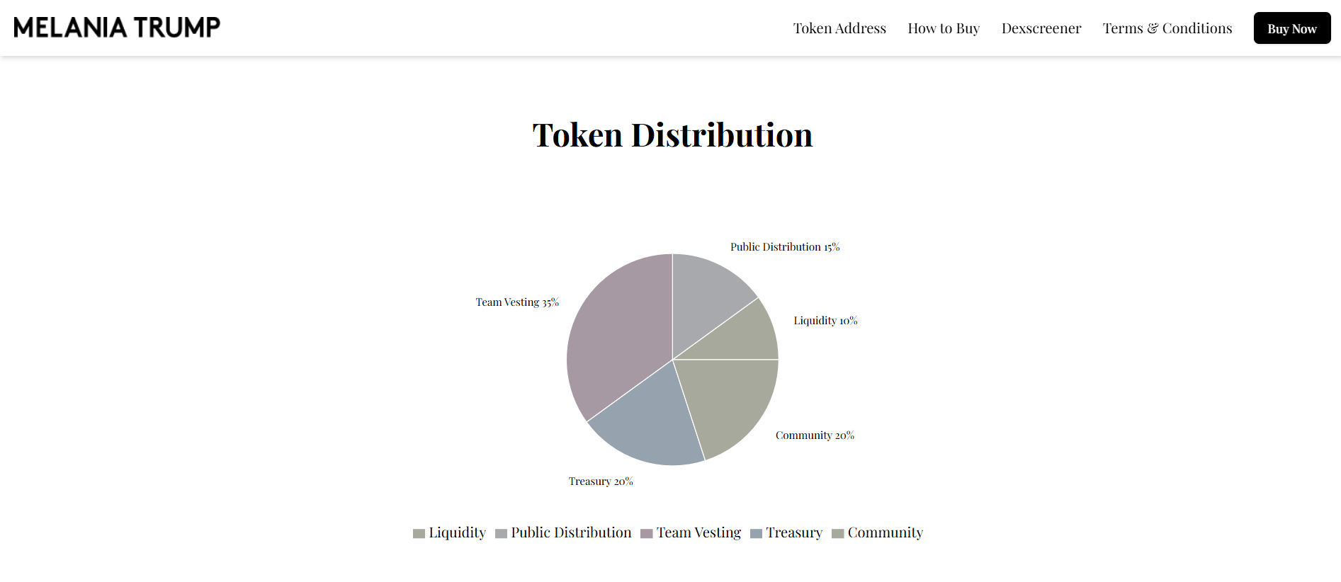Information from the project’s official website reads that it will allocate 35% to the team, 20% each to treasury and community, 15% to the public, and 10% to liquidity.