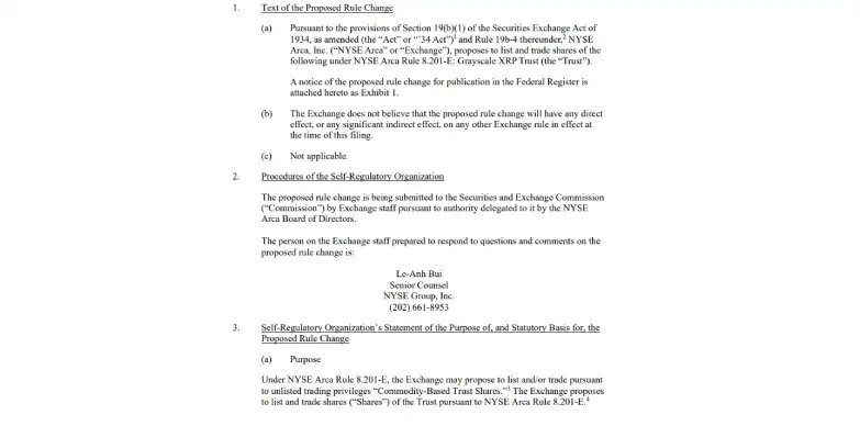 NYSE Arca’s Grayscale XRP Spot ETF Conversion with SEC