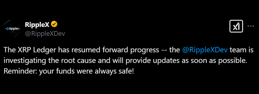 Ripple’s technical team is conducting a post-mortem analysis to identify the root cause of the halt and prevent future incidents. Schwartz hinted at a self-healing network mechanism, noting that only one validator operator manually intervened. RippleX reaffirmed that user funds remained safe and that the incident did not result in any asset losses.