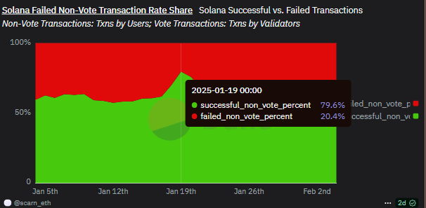 On January 19, Solana actually had a record of successful transactions, rising up to 79% as traders took care to see their swaps succeed. The day of the TRUMP launch was the most successful for the network.