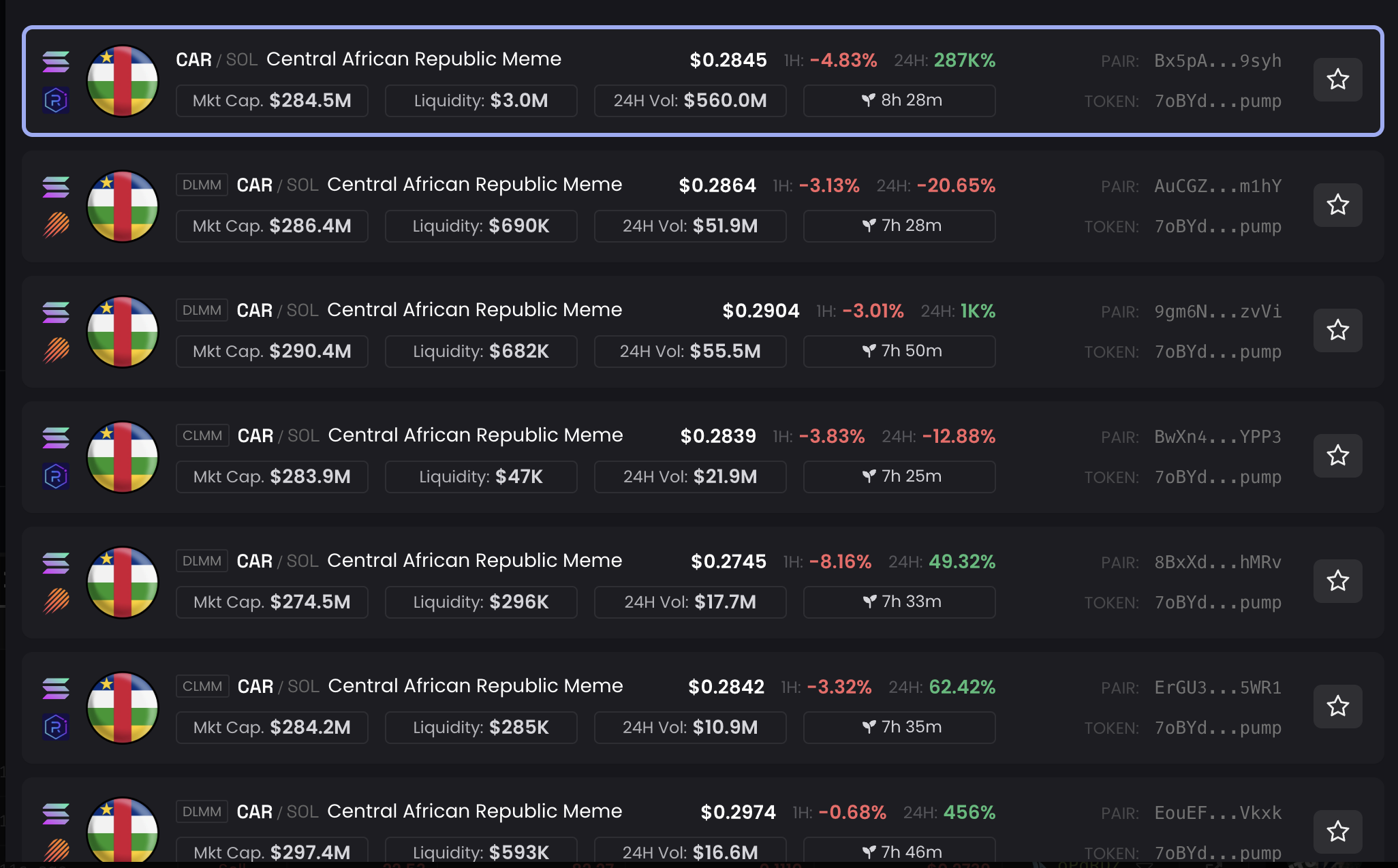 “Be careful with $CAR – Central African Republic Meme They control 80% of total supply! If it were a regular coin it would be a major red flag. Insiders are already making millions dumping on you. Also the Trump Coin Team controlled 80% and we know how it ended,” the user explained.