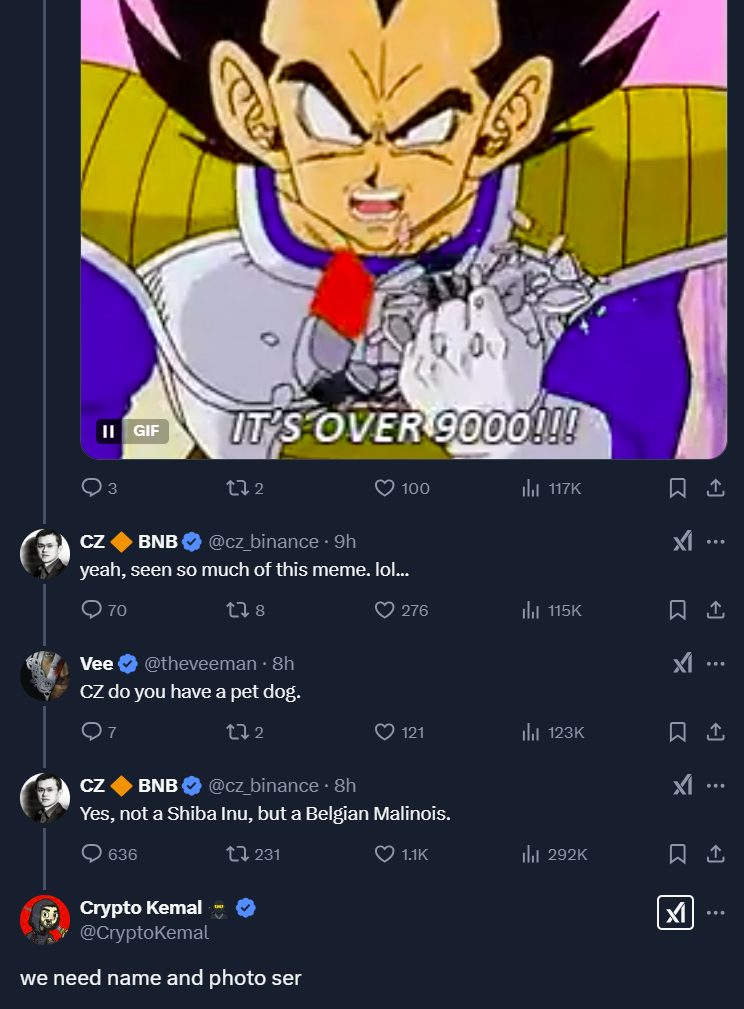 “Honest newbie question. How does this work? I share my dog’s name and picture, and then people create meme coins? How do you know which one is “official”? Or does that even matter?” CZ stated, adding that he received numerous requests for his dog’s name and picture.