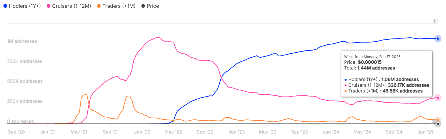 Particularly, Hodlers, those holding for over a year, increased from 1.03 million to 1.06 million. In addition, Cruisers, those holding for 1 and 12 months, rose from 280,100 to 327,770. Traders, representing those that have held for less than a month, increased from 25,720 to 44,280.