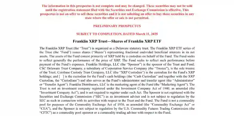 Franklin Templeton has submitted its new exchange-traded fund (ETF) focusing on the performance of Ripple(XRP). The Trust, organized as a Delaware statutory trust, will offer shares representing fractional ownership in the Fund’s assets, primarily consisting of XRP.