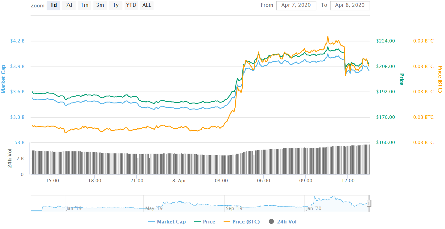 Those gains were exceeded by Bitcoin SV (BSV), which gained 19.4% in the same time period. Bitcoin SV is scheduled to carry out its own block reward halving by Friday, April 10th.