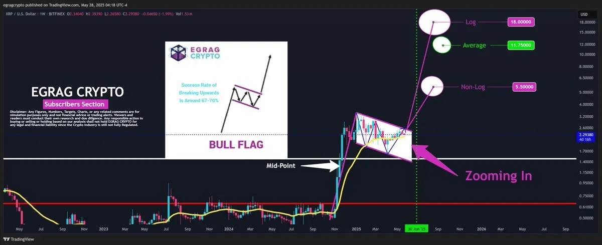 However, despite the gloomy performance, the market pundits remain optimistic about the future trajectory of the coin. For context, analyst EGRAG CRYPTO said that the XRP price is likely to hit $5.5, citing the bull flag formation. However, he noted that the crypto must break through resistance at around $2.3 by June 30.
