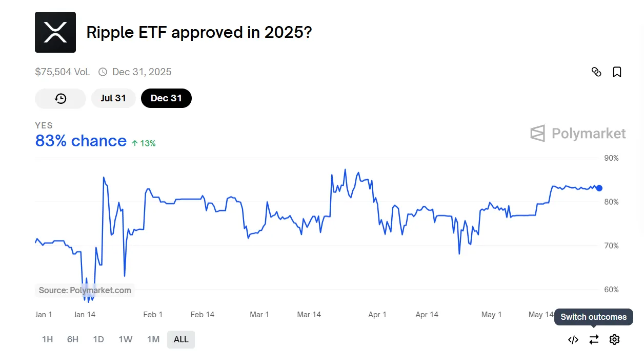 Simultaneously, it also comes after the recent launch of the VolatilityShares’ XRP ETF, which has already fueled market optimism. Meanwhile, according to Polymarket data, the XRP ETF approval chance by the US SEC now stands at 83%.