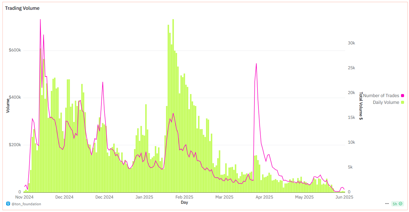 Meanwhile, Blum’s daily trading volume has plummeted in 2025. According to Dune Analytics, daily trading volume on Blum.io fell from over $700,000 in February to about $6,000 in June.
