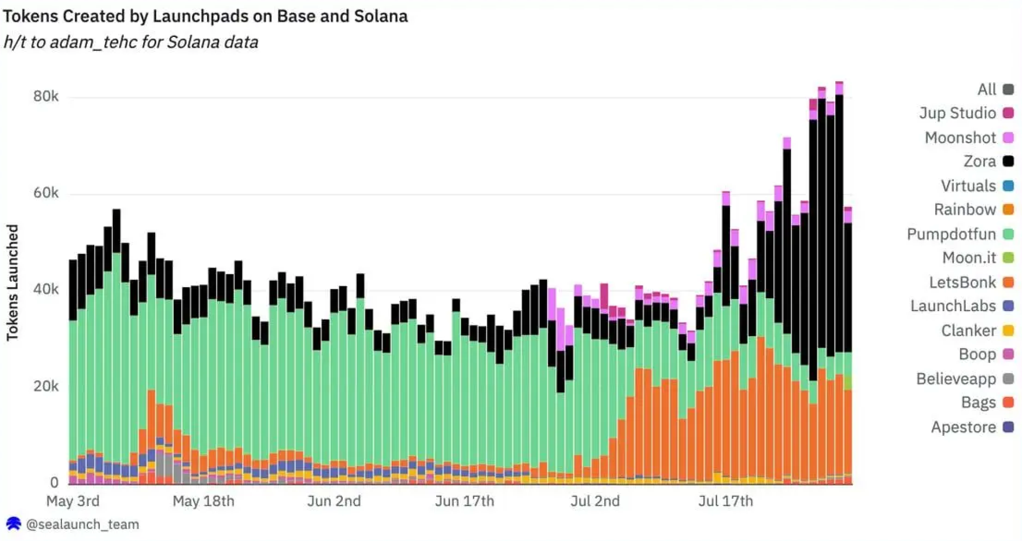 Solana’s dominance in token launches and $NFT minting is being rapidly challenged by Coinbase’s Base network, which has now overtaken Solana in daily token issuance. According to Dune Analytics, the surge is fueled by the integration of Zora and Farcaster into the new Base App, which streamlines “SocialFi” experiences for everyday creators.