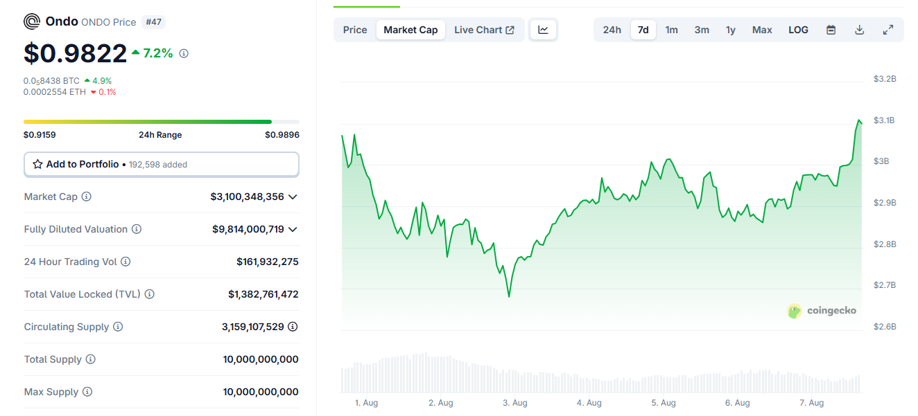 Ondo Finance is quickly becoming one of the main infrastructure providers for tokenization, with the potential to set the standard for tokenized asset classes. The project gained exposure after Trump’s World Liberty Fi added ONDO tokens to its portfolio.