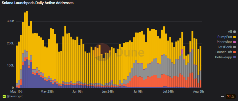 The presence of deployers also leads to a rotation between meme platforms, where the same large-scale token launchers shift to the best available markets. This has led to a more diverse market share, where every few days the dominance of platforms changes.