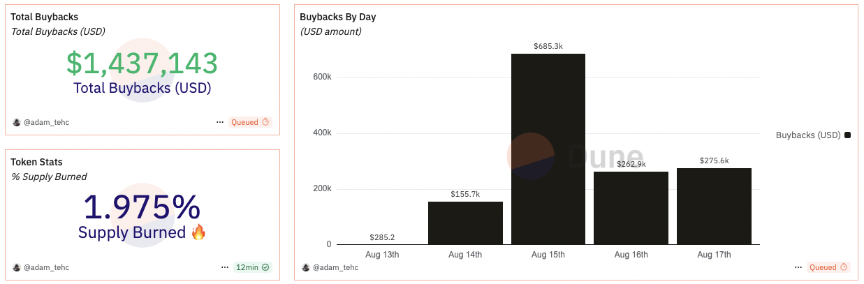 According to Dune Analytics, the flywheel has purchased and burned $1.4 million worth of LIGHT after a little over three full trading days.
