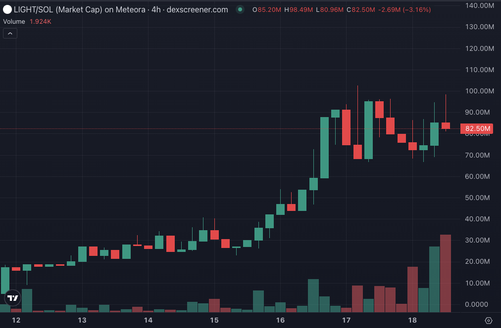 The DEX’s native token, LIGHT, launched at roughly a $15 million market capitalization on Aug. 12, and is up 445% from its launch to an $80 million market capitalization.