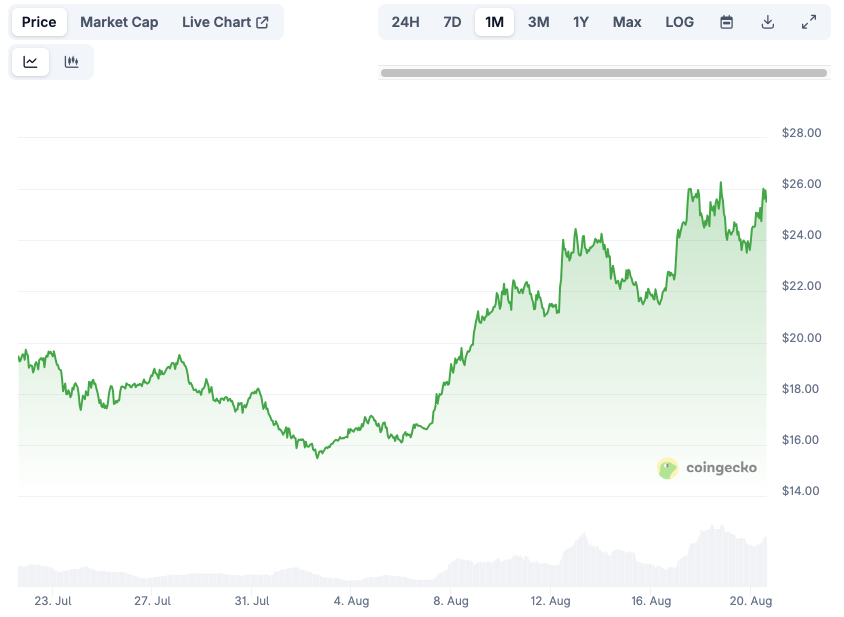 Chainlink’s LINK token has been one of the top-performing altcoins since it announced the Chainlink Reserve on Aug 7, a program that uses offchain revenue to accumulate LINK.
