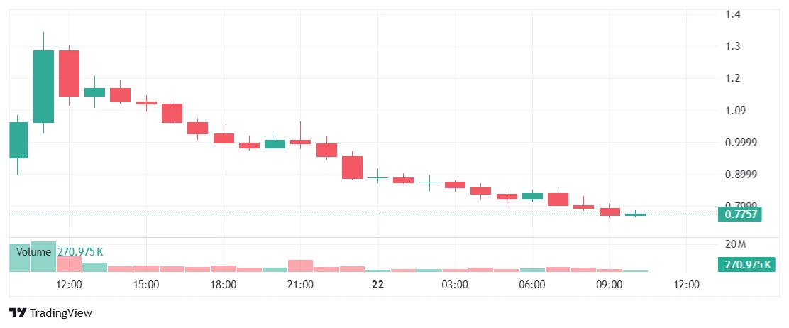 In line with the latest analysis, after reaching the height of $2.0957, $YZY has continuously been dropping with minor fluctuations. At the moment, its price is $0.7822, showing a 29.32% dip over the past 24 hours. However, since its launch, the meme token has slumped by up to 69.69%. Additionally, the market capitalization of $YZY is standing at $233.86B, signifying a 27.1% decrease. Moreover, the 24-hour volume accounts for $182.35M, indicating a 78.82% dip.