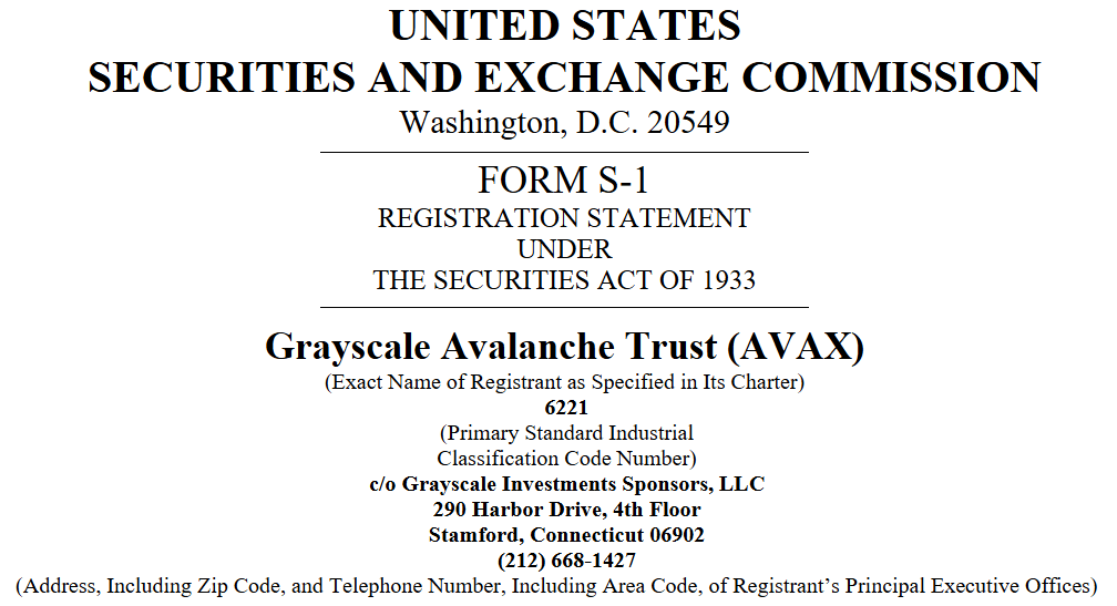 Grayscale Investments has filed with the U.S. Securities and Exchange Commission (SEC) to convert its Avalanche Trust into a spot ETF, continuing its efforts to expand into altcoin-based exchange-traded funds (ETFs).