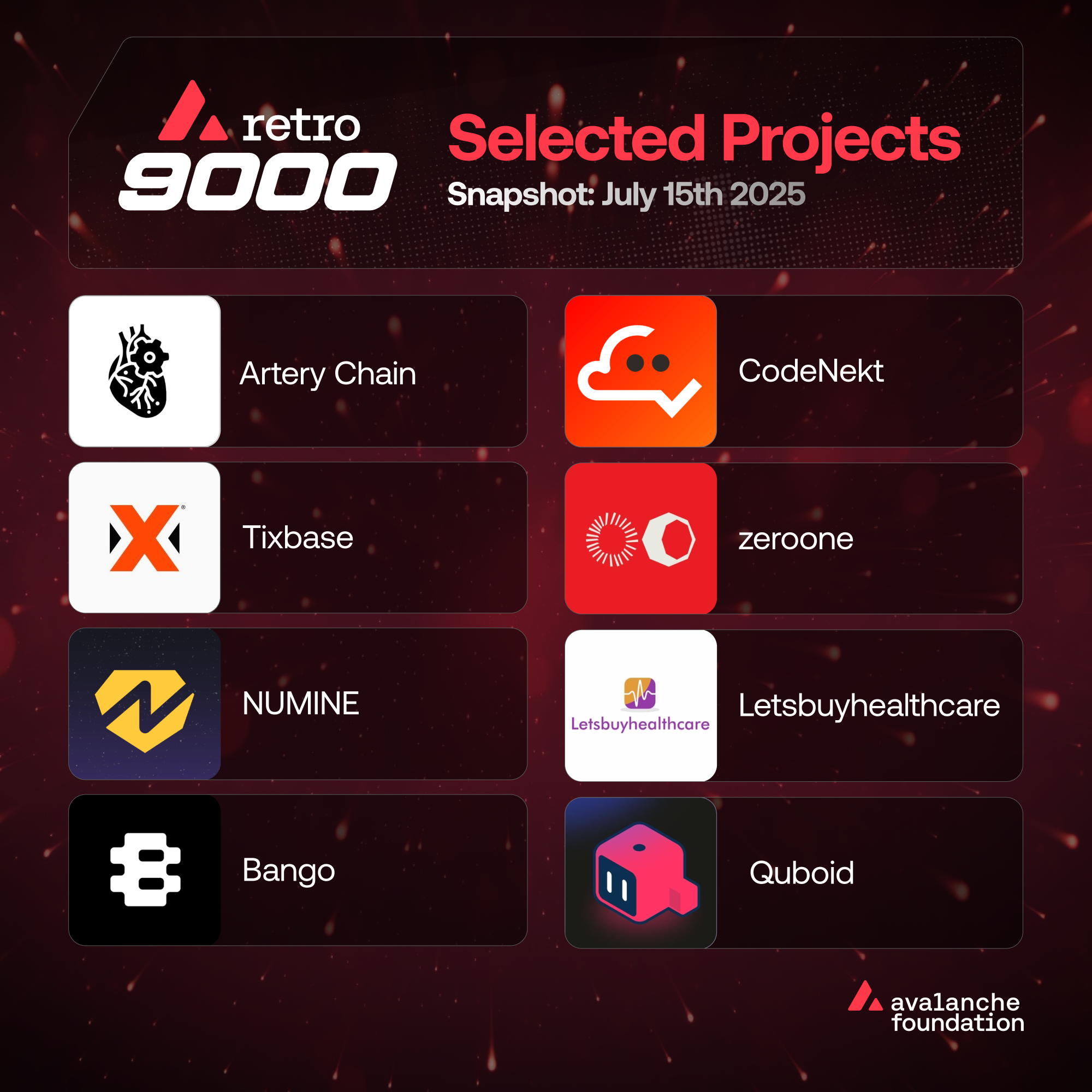As part of its continued commitment to empower the Avalanche community and the developers building it, the Avalanche Foundation is proud to announce the second cohort of Retro9000 grantees, selected from a competitive pool of builders innovating across the Avalanche ecosystem.