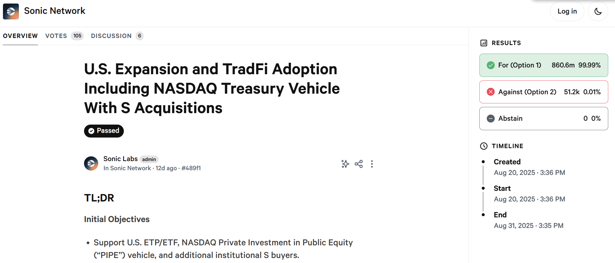 Sonic Labs has received community approval to enter the U.S. capital markets and launch a regulated exchange-traded fund (ETF). The developers aim to raise $150 million to strengthen their presence in traditional finance and increase the appeal of the Sonic (S) token.