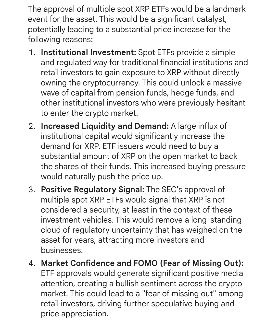 According to Gemini, ETF issuers would need to purchase large amounts of XRP to back their funds, creating strong buying pressure.