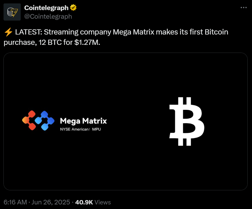 Even so, Mega Matrix is not alone in looking to digital assets as a balance-sheet strategy. Many smaller firms have either added cryptocurrencies to their treasuries or pivoted entirely toward digital asset holdings.