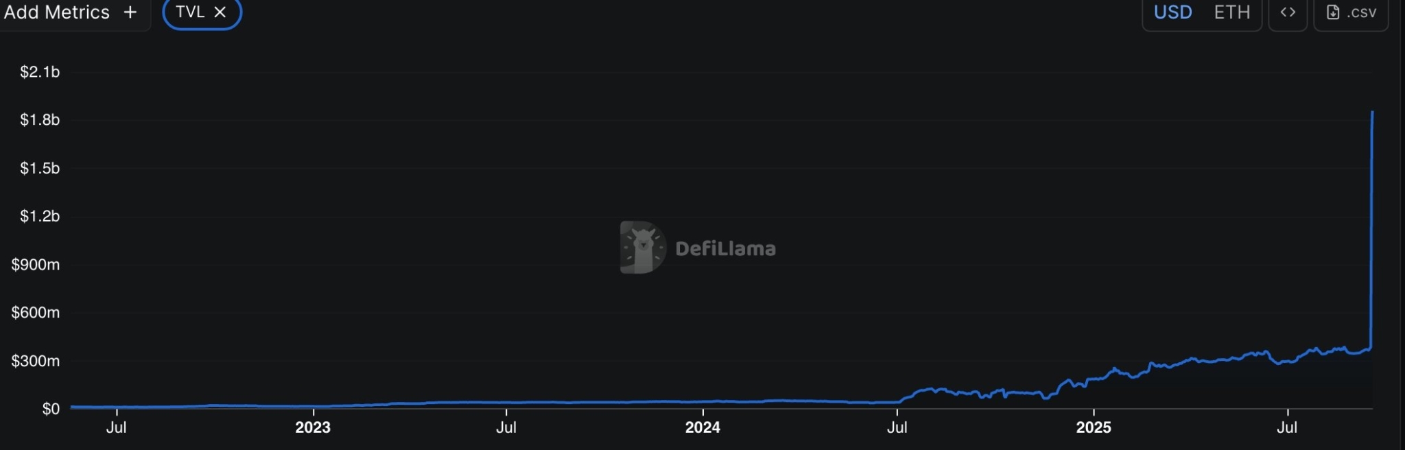 The total value locked (TVL) in the protocol has hit a record high of $1.85 billion, an astronomical increase from $141 million in January.