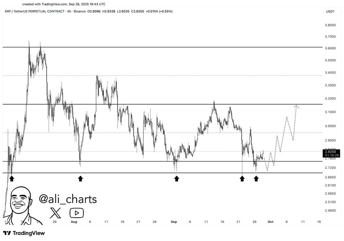 At the time of writing, XRP trades at $2.88, recovering from last week’s dip that briefly pushed the price below $2.80. The move comes on the heels of a broader market inflow that saw XRP’s capitalization expand by more than $6 billion overnight, as reported earlier by Finbold.