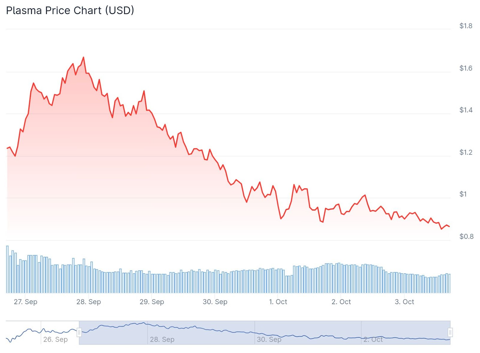 News of the integration comes after a less-than-ideal week for Plasma, which currently has a TVL of over $5.6 billion, per DeFiLlama. Its native token XPL has dropped nearly 34% since going live and is currently trading at $0.87.