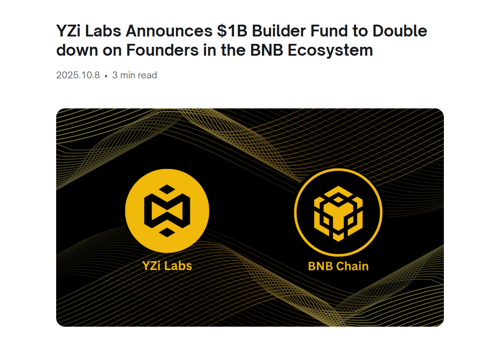 CZ’s YZi Labs Backs BNB Builders with $1B Fund