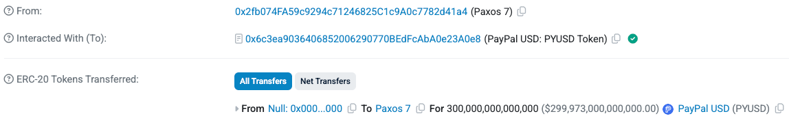 Paxos Mints and Burns $300 Trillion PYUSD on Ethereum