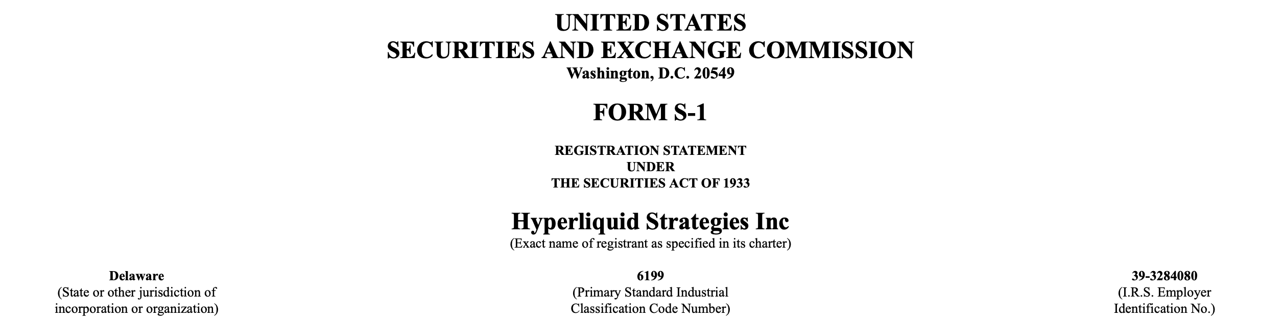 Hyperliquid Strategies Inc. (HSI), formed from an $888 million reverse merger between Sonnet Biotherapeutics Holdings Inc. and Rorschach I LLC, has filed a Form S-1 registration with the U.S. Securities and Exchange Commission (SEC) to raise up to $1 billion through an offering of 160 million shares of common stock.