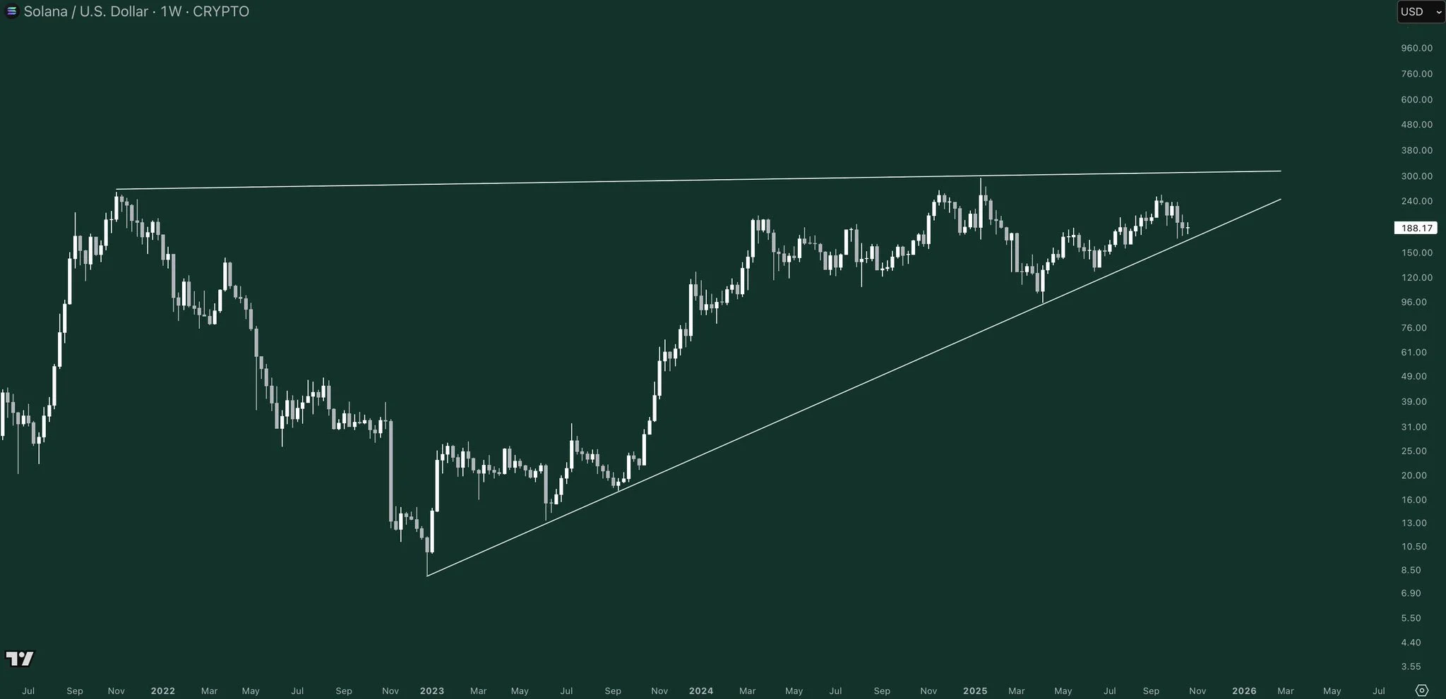 Moreover, analyst AltcoinGordon highlighted that Solana’s weekly chart continues to form an ascending triangle a structure that has historically preceded major breakouts. The long-term resistance zone near $320–$340 remains the key level to watch. Sustained strength above this range could confirm a breakout toward $500.