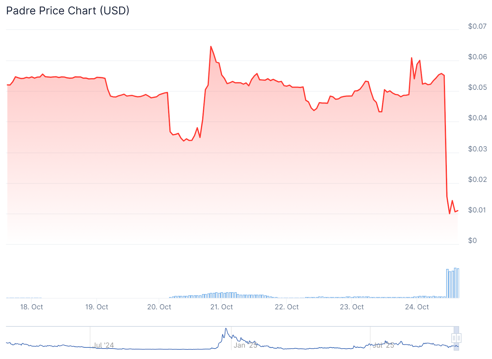 PUMP is up 9% on the news. However, PADRE token holders have been left in the dust, with the token cratering by 78% today after it was announced that PADRE would have no further utility.