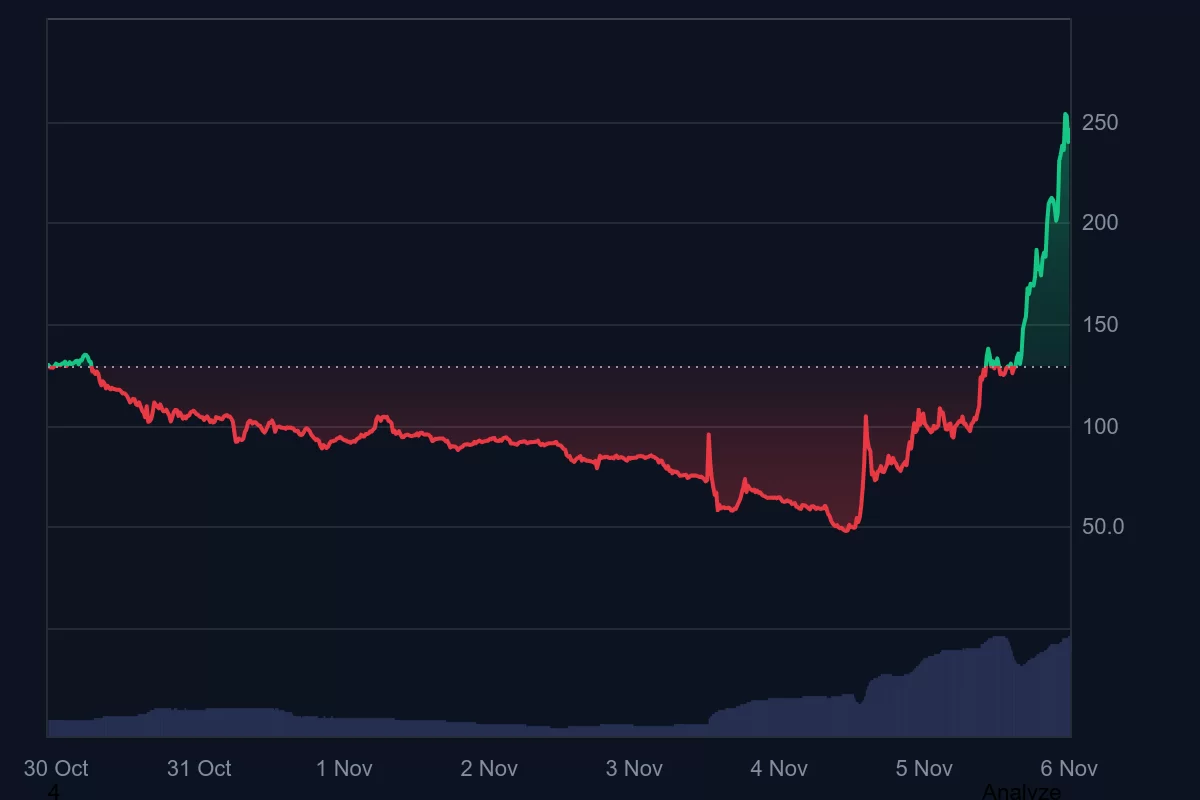 However, the price has risen by nearly 250% from its base level in the last two days, meaning the investor is missing out on a potentially large profit.