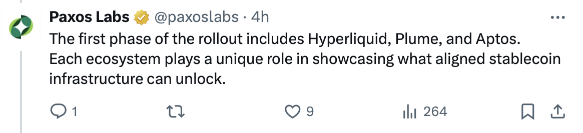 Paxos Labs said the initial rollout showcases how different networks can plug into the stablecoin’s economics. On Hyperliquid, USDG0 will support yield-aligned trading and new lending markets, while Plume and Aptos plan to use it to power modular DeFi, tokenized yields and enterprise-grade stablecoin rails.