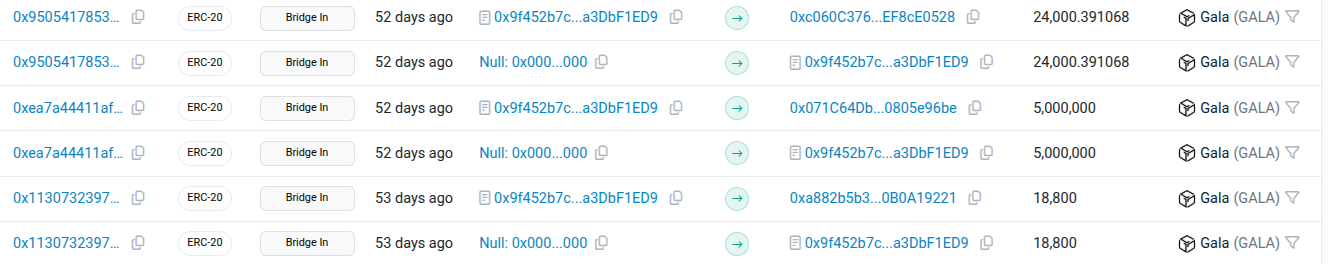 The same pattern was repeated across subsequent daily withdrawals of 5 million GALA each until the bridge was paused.