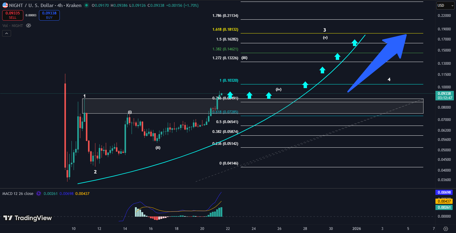 If this momentum continues, analysts believe NIGHT could move toward the $0.17 level. As long as the price stays above the $0.09 support zone, the trend remains positive.