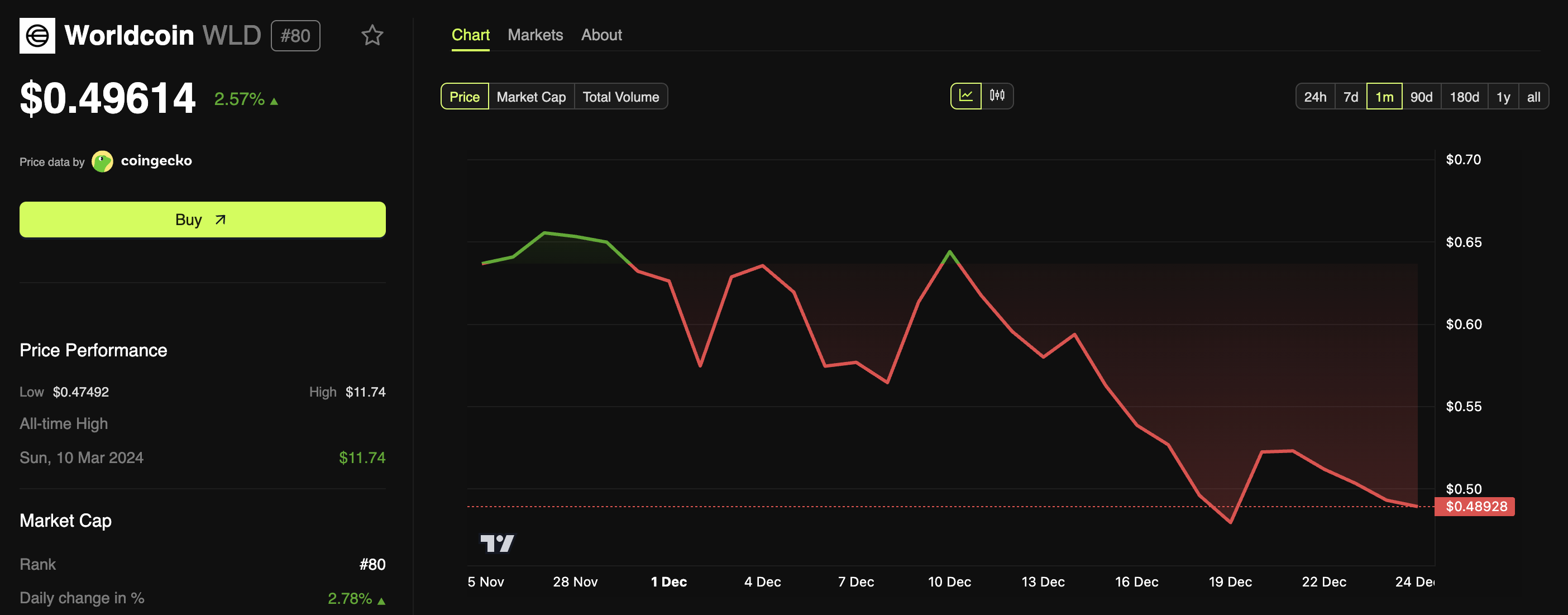 The acquisition comes amid a period of declining investor engagement, with WLD’s price slipping 21% over the past month.