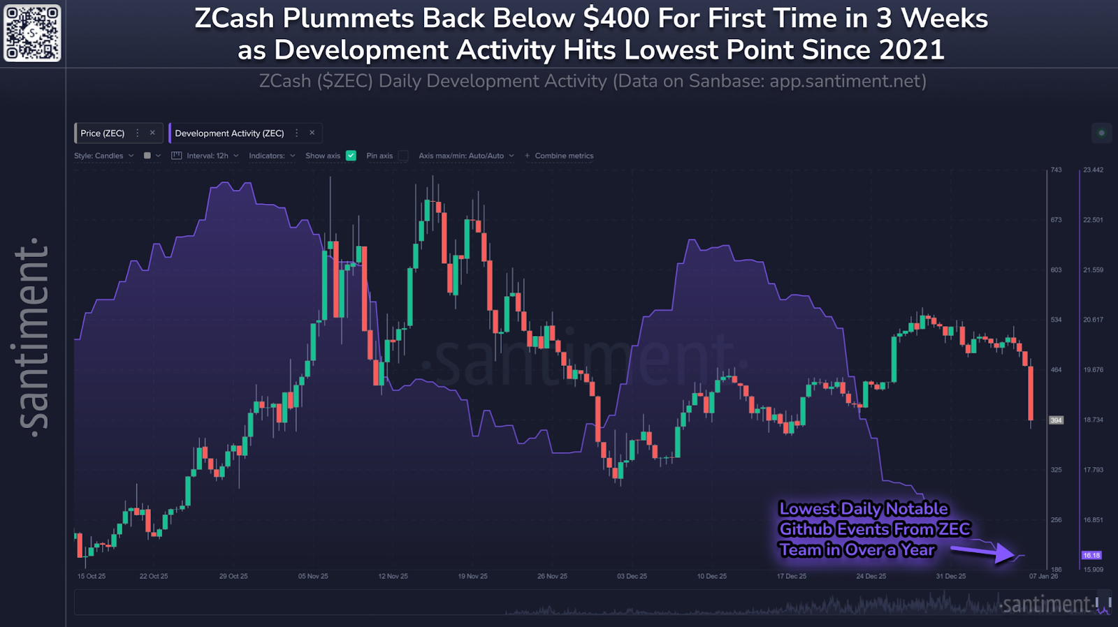Data from market intelligence company Santiment shared in a Thursday X post showed that developer activity tied to Zcash dropped to its weakest level since November 2021. Over the same period, the Zcash (ZEC) token has fallen about 40% over the past two months.