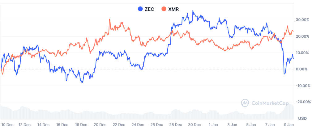 Privacy coin Zcash competitor Monero (XMR) surpassed ZEC’s market capitalization on Thursday, regaining its position as the leading privacy-preserving cryptocurrency, according to CoinMarketCap.