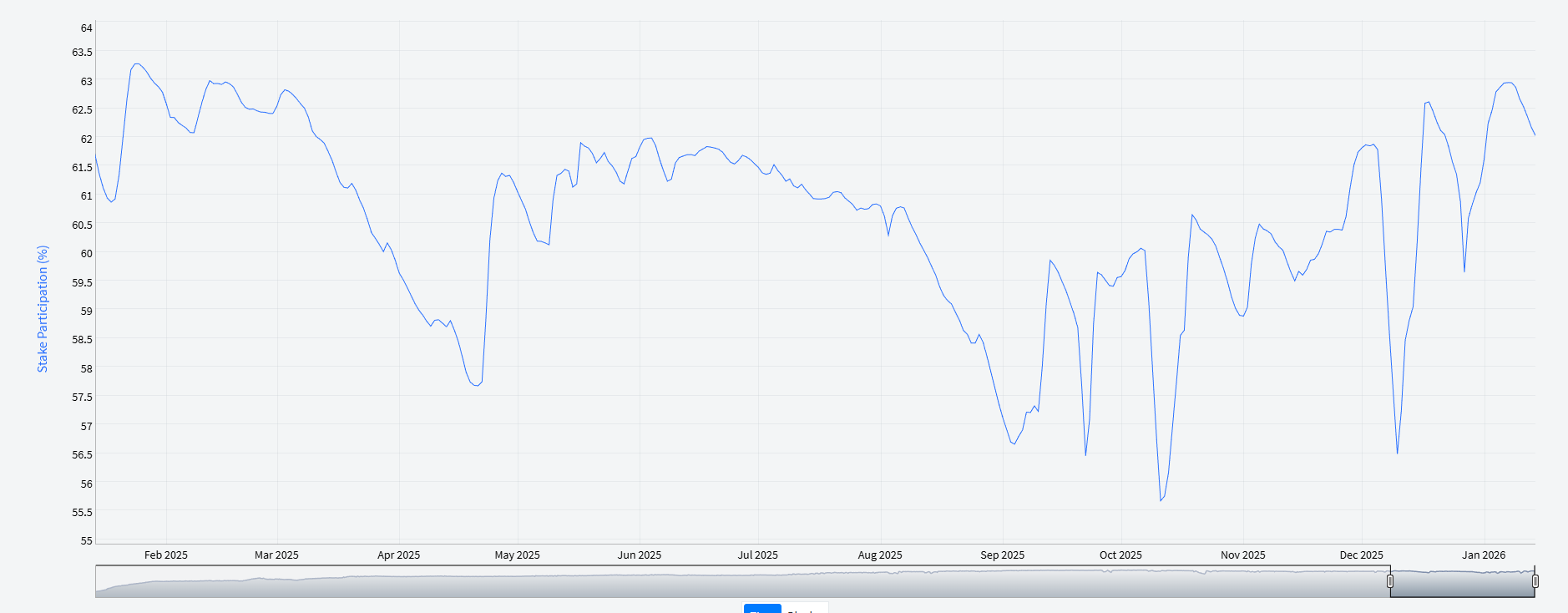 Decred data shows that more than 10 million DCR are now staked. This represents over 62% of the total supply and marks the highest ratio since March 2025.