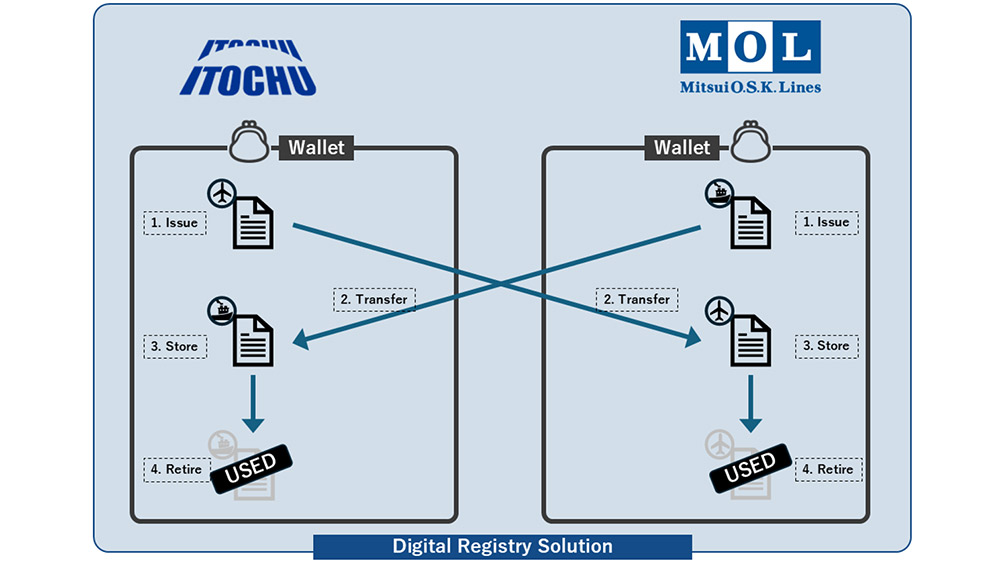 Both companies traded EACs to reduce their respective carbon footprint. MOL purchased EACs from ITOCHU to reduce its air transport emissions from its employees’ frequent travel. ITOCHU then purchased EACs issued by MOL to reduce its maritime emissions.