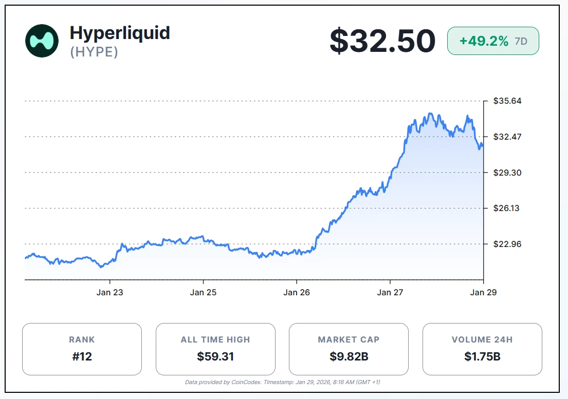 $HYPE’s price action over the past week (Source: CoinCodex)