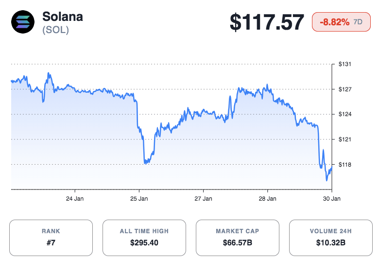 Significantly, the launch comes as Solana trades lower in the short term. $SOL fell to $116.95, posting a 6.52% daily decline and a 9.41% weekly drop. However, analysts continue to track constructive technical signals.