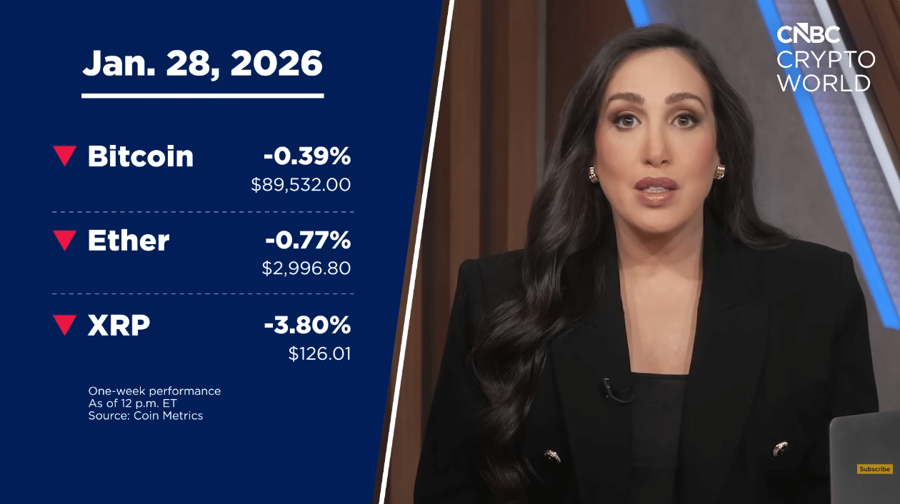 Notably, CNBC’s Crypto World show often displays the prices of Bitcoin, Ethereum, and $XRP, which it considers the top three crypto assets. However, on Jan. 28, the show mispriced $XRP by using Solana’s value in its place. For context, at the time of the show, SOL had a price of $126, which CNBC wrongly attributed to $XRP.